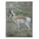 Caderno do Antílope Bidente Macho. Uma fotografia de um jovem antílope bidente macho no início da primavera. As neves acabaram de derreter e a grama está começando a verdejar e crescer, e os antílopes estão trocando sua pesada pelagem de inverno por um casaco de verão muito mais leve e elegante.