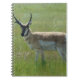 Caderno do Antílope Bidente Macho. Você pode dizer que é primavera nas pradarias pela vegetação verdejante ao redor deste belo antílope bidente macho, na verdade ele é um "billy" pois os antílopes são membros da família dos caprinos. Seu casaco parece um pouco desgastado porque eles soltam seus pesados casacos de inverno em tufos antes que o verão quente chegue.