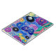 Um caleidoscópio de cores forma padrões giratórios e motins florais, criando uma tapeçaria visual viva. O uso de azuis, roxas e verdes ousados combina-se com pinças e amarelos em greve para evocar uma sensação intrincada e caprichosa. As cores trabalho de arte sugerem um design lúdico e sofisticado.