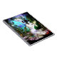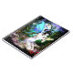 Uma cena mágica de uma fada à noite, sentada à beira de uma piscina florestal. Ela está segurando uma mosca iluminada com brilho em suas mãos em uma glória de floresta encantada, e está cercada por magia, luz e lanternas pendurados em árvores.