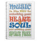 Um caderno espiral é uma ferramenta versátil e conveniente para anotar notas, ideias e lembretes. Mas e se o seu caderno pudesse inspirá-lo a liberar sua criatividade e expressar suas emoções através da música? Essa é a ideia por trás deste caderno espiral único, que apresenta a citação motivacional "A música é a chave para desbloquear seu coração e alma, e libertar seu espírito." na capa. Seja você um músico, um amante da música ou simplesmente alguém que aprecia o poder da música, este caderno irá encorajá-lo a explorar seu potencial musical e paixão. Use-o para escrever letras, compor melodias, registrar observações ou desfrutar da beleza da música em sua vida.