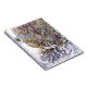 Um design fotográfico da maré marinha se lavando na praia e rochas, expondo as algas e os lagoas.