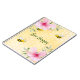 Fundo amarelo, branco com um padrão de mel. Decorado com flores tropicais cor-de-rosa, hibisco e abelhinhas felizes. O texto: Bee Happy em um roteiro de estilo com letra verde. Perfeito como um diário de verão, receitas de comida, um notebook para planos ou atividades de viagem.