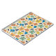 A playful, seamless repeating pattern featuring stylized multicolored flowers and leaves with textured, sketchy edges on a cream background.