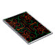 Padrão floral de abstrato cor laranja, verde e vermelha sobre fundo preto