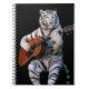 A crisp, polished notebook cover depicting a focused white tiger playing an acoustic guitar. The dark negative space creates an elegant, modern feel—perfect for journaling, planning, or creative inspiration.