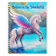Um notebook mágico e caprichoso para você escrever seus sonhos, ideias e inspirações. Perfeito como presente para uma menina. Há muitos mais produtos com esta imagem aqui nesta loja; e para um cartão de aniversário, vá para minha outra loja Rosart Designs: https://www.zazzle.com/pegasus_birthday_card-256747858527908939