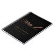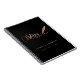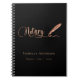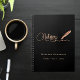 Um fundo preto elegante, decorado com uma caneta pena. Personalize e adicione um nome e título. Texto dourado: Notário