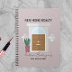 Este design de caderno elegante e moderno é perfeito para profissionais de imóveis. O estilo gráfico minimalista apresenta uma porta da frente estilizada com uma janela arqueada, ladeada por arandelas e uma planta em vaso. O texto em negrito acima da porta adiciona um toque profissional, enquanto a área personalizável abaixo permite que você o personalize com seu nome e título. O fundo rosa pastel suave exala calor e acolhimento, tornando-o um companheiro ideal para anotações em movimento.