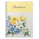 Adicione um pouco de sol primaveril à sua papelaria com este lindo caderno encadernado em espiral. Com uma ilustração de flores amarelas, azuis e brancas em estilo aquarela, o caderno pode ser personalizado com um nome em tipografia de roteiro elegante. Ideal para aniversários de primavera, Páscoa, Dia das Mães ou qualquer ocasião.