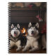 Caderno Espiral Alaskan Malamute na Lareira de Natal
