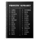 Notebook alfabético fonético Alpha, Bravo, Charlie, Delta, Echo, Foxtrot, Golf, Hotel, Índia, Julieta, Kilo, Lima, Mike, novembro, Oscar, Papa, Quebec, Romeu, Sierra, Tango, Uniforme, Victor, Whiskey, X-ray, Yankee, Zulu.