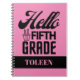 Notebook personalizado de 5º ano de saudação. O notebook da escola personalizada é perfeito para os estudantes. Personalize-o com o seu nome para uma aparência exclusiva de cinta.