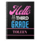 Notebook personalizado de 3º grau Hello. O notebook da escola personalizada é perfeito para os estudantes. Personalize-o com o seu nome para uma aparência exclusiva de cinta.