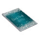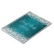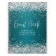 Crie o seu próprio caderno decorado com vazio de cobrir para celebração de aniversário para o dia especial dela. Cinza de silva falsa brilhando com um fundo verde-azul-turquesa escuro. Os faíscas e brilho falsos são gráficos digitais que impressão gostam de uma foto. Personalize o estilo, o tamanho ou a cor da letra da caligrafia do "Livro Convidado" para corresponder. Exclua o gráfico de gradiente se preferir um plano de fundo de cor sólida.