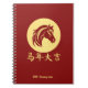 Caderno Espiral Ano Novo Chinês Moderno Cavalo Dourado Vermelho