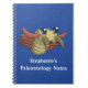 Este notebook apresenta um desenho animado de uma anomalia, um popular predador cambriano preservado na Chala Burgess. O plano de fundo apresenta um esboço do tipo de fóssil de anomalocaris frequentemente encontrado nesses estratos. O texto padrão diz "Notas da Paleontologia da Stephanie", mas você pode personalizá-lo nas caixas acima!