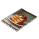 A sweet notebook with a waffle theme. An illustration of waffles with strawberries, blueberries, syrup and butter on a pretty antique plate.