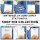 Este caderno floral é decorado com um girassol amarelo. Facilmente personalizável. Use a Ferramenta Design para alterar o tamanho, o estilo ou a cor do texto. Original Watercolor © Michele Davies.