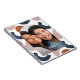 Impressão rosa moderno e ousado, azul, ferrugem e abstrato com um arco de fotos, seu nome e o ano em uma simples tipografia branca.