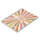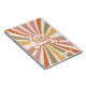 "Sentindo Groovy" retro cores do arco-íris em um padrão de explosão solar que apresenta mostarda, abacate verde queimado laranja e rosa empoeirado. Este design tem um tema fofo dos anos 60 e 70. Fontes estéticas do Retro Vintage com seu nome ou monograma personalizado. Arte criada e gráfica desenhada por artista e designer internacionalmente licenciado, Audrey Jeanne Roberts, copyright.