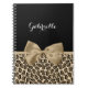 Adicione uma dica de moda ao seu estilo pessoal com este notebook de impressão onça-pintada, giro-marrom, com uma fita de bronca, amarrada em um arco bonito. Uma adolescente adoraria que seu nome fosse personalizado neste design de impressão animal na moda. Imagem impressa plana, não arco real.