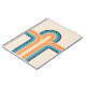 A ilustração com estilo retrorativo com decoração colorida (amarelo, azul, laranja, azul marinho, bege, turquesa) sobre fundo bege. Você pode adicionar seu nome/monograma para personalizar o item.