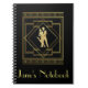 Caderno Espiral Art Deco - Gatadeiras pretas e douradas, por 1920