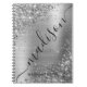 Um moderno, cinza-prateado, rolo monograma metálico monográfico, script de assinatura personalizado caderno espiral personalizado. Esta design feminina com um fundo metálico esfregado em prata, cinza prateada (cinza), borda reluzente e um enorme nome de assinatura escrevendo de mão ou modelo de texto monograma. O nome está escrito em um estilo de letra sutil, muito bonito e liso, com letra maiúscula e escrita. presente feminina excelente para raparigas e mulheres na escola, no escritório doméstico, nos negócios, no aniversário, no casamento, no chá de panela, na doce festa de aniversário 16, ou para qualquer pessoa que ama o estilo feminino bonito moderno.
