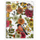 Pássaros de jardinagem feitos à mão- pães-de-pata-dourada e touro sobre buquês de flores e folhas- dahlias, crisântemas, calendários, flocos e samambaias