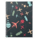 Caderno Espiral Avião Negro e Padrão de Aviação
