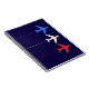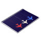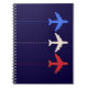 Planos azuis, brancos e vermelhos alinhados com rotas pontilhadas