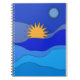 Caderno Espiral Azul abstrato paisagem da lua solar