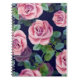 Caderno Espiral Azul Escuro, Rosas Rosa Aquarela.