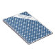 Este caderno tem um fundo xadrez azul e branco com um retângulo branco delineado por uma borda fina. O texto interno é estilizado com uma mistura de letras cursivas e fontes simples, criando um visual limpo, clássico e elegante.