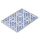Este produto tem um design intricado com fundo azul escuro e padrões ornamentais brancos. O design lembra os estilos tradicionais de cerâmica ou porcelana, que podem interessar a quem aprecia a estética clássica ou vintage.