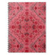 Caderno Espiral Azulejos florais em vermelho e melancia rosa