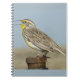 Notebook Meadowlark Ocidental. Nas pradarias do sudeste de Alberta onde vivo a chegada dessas aves é tanto um sinal de primavera quanto o retorno dos robins. Sua música distintiva e seus seios amarelos brilhantes com o véu negro significam que o primavera chegou.