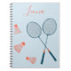 Adicione o seu nome a este bloco de anotações espiral com uma ilustração de emblema de safra doce num fundo azul pálido. Personalize-o! Você pode alterar a fonte e a cor do nome - ou removê-lo se preferir. Calma! Espero que goste deste desenho de raquetes e pássaros de badminton, eu fiz para você! Procure mais no meu compro!