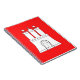 Notebook com bandeira de Hamburgo, bandeira vermelha com ilustração de um castelo branco com três torres