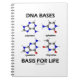 Mostre sua atitude bioquímica com uma dose de diversão educacional e científica com este notebook com as quatro bases nucleotídicas do ácido desoxirribonucleico (DNA) junto com o seguinte truísmo biológico: "DNA Bases Basis For Life". Apresentando a estrutura molecular da adenina, citosina, guanina e tiamina.