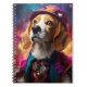 Um Beagle brincalhão vestido com uma fantasia vibrante e branca contra um pano de fundo brilhante e mágico. Essa design encantadora é perfeita para amantes de os animais.