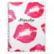 Caderno Espiral Beijos de Batom Vermelho Rosa em branco