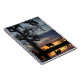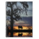 Um bonito caderno de um cavalo refletido num lago ao pôr do sol com um carvalho. Uma bela, serena, imagem da natureza.