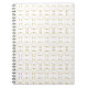 Notebook elegante com um lindo padrão geométrico de ouro sobre fundo branco. Estas bolinhas douradas formam um padrão giratório de quatro braços.