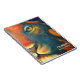 Um caderno espiral personalizado com uma imagem digital a óleo, pintada de um rosto de leões próximo, com olhos amarelos piercing. As cores dominantes incluem laranja e amarelo. Parece orgulhoso, real e feroz. Personalize com um nome e assunto/título.