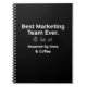 Celebrate your unstoppable marketing squad with this sleek notebook featuring the phrase “Best Marketing Team Ever – Powered by Data & Coffee.” Perfect for brainstorming sessions, campaign planning, or simply jotting down brilliant ideas over a caffeine fix. A thoughtful gift for marketers, advertisers, strategists, or anyone who lives for metrics and lattes.