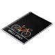 Bicicleta laranja sobre fundo preto com um nome personalizado. O nome pode ser editado ou excluído. A cor de fundo pode ser alterada.