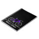 Bicicleta roxa sobre fundo preto com um nome personalizado. O nome pode ser editado ou excluído. A cor de fundo pode ser alterada.