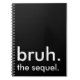 Mantenha suas notas sarcásticas e na moda com este notebook preto minimalista com a frase "bruh. the sequel." em letras brancas nítidas. Quer você esteja fazendo jornalismo, fazendo anotações de classe, ou fingindo ser produtivo no trabalho, este cobrir engraçado dá o tom. Limpo, elegante e totalmente relacionado.